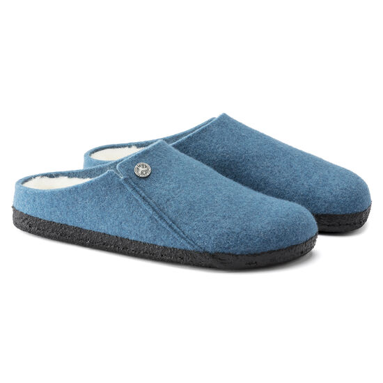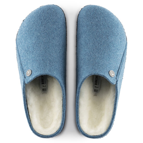 The Birkeqdfnstock Zermatt is our first true slipper. It features our iconic cork latex footbed, and to keep you extra cozy, it's fully lined in genuine shearling that will keep your feet warm all winter long. The upper is made of soft genuine wool.