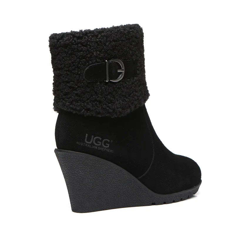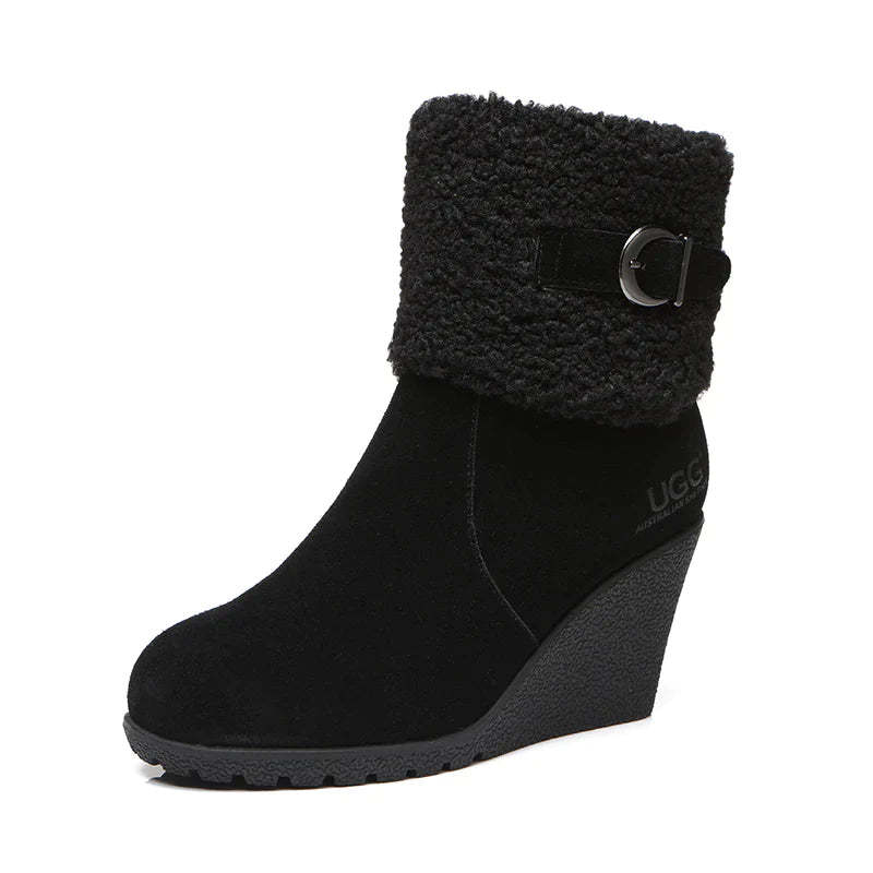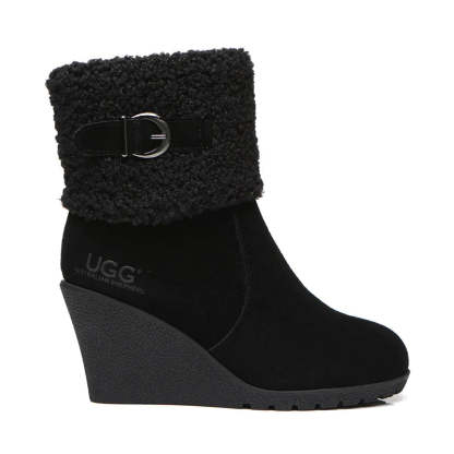 - A high-quality outdoor cushion sole with curly sheepskin wool plus woven wool makes the boots comfortable wedge ever.