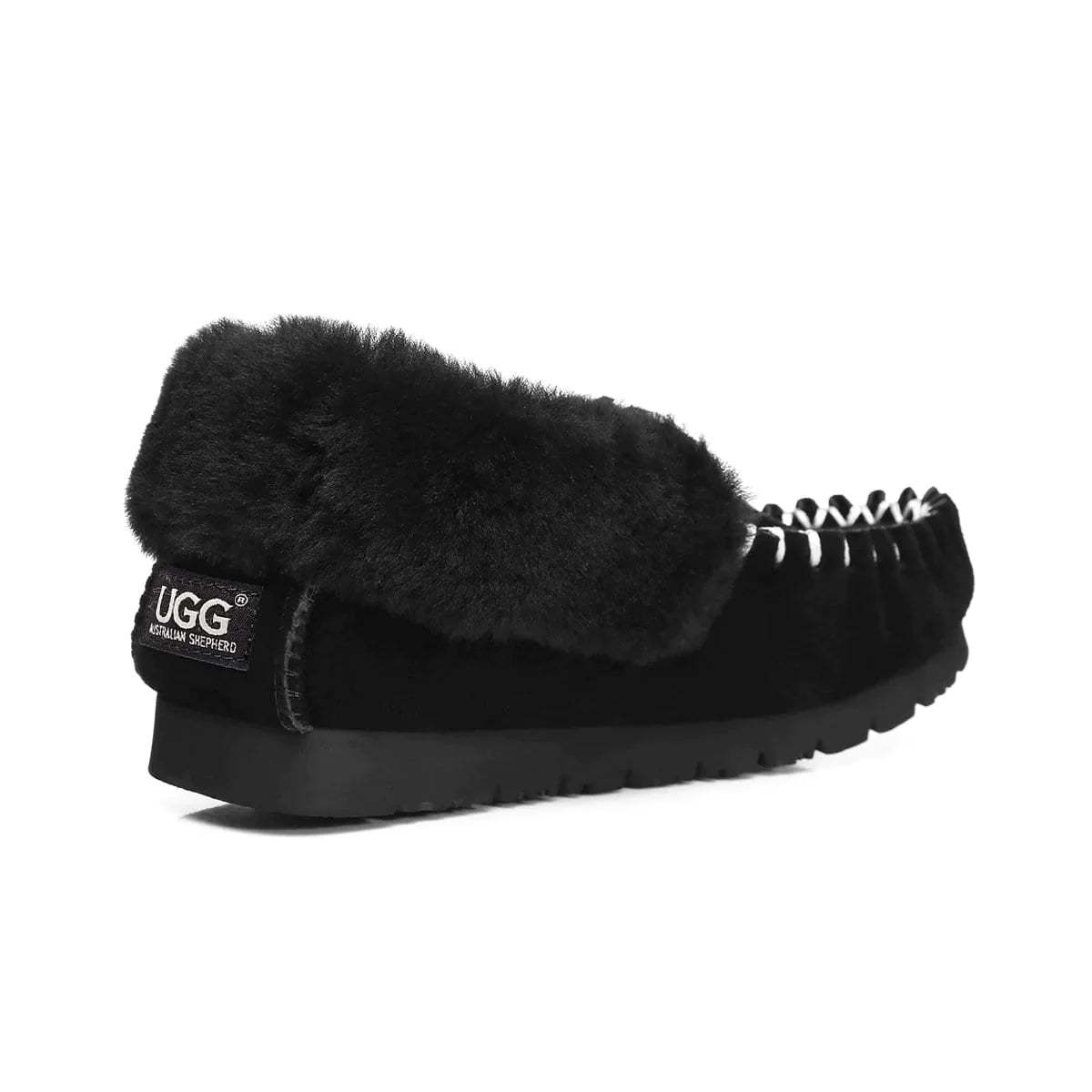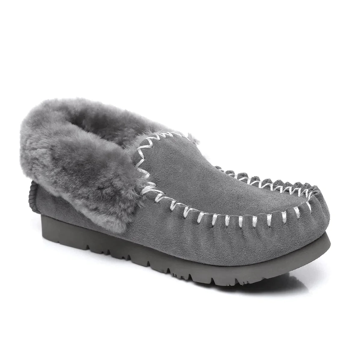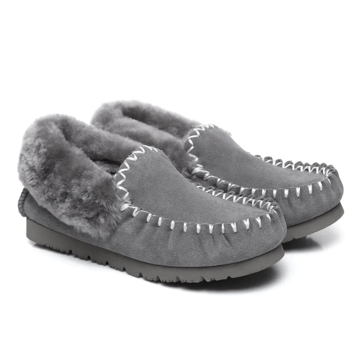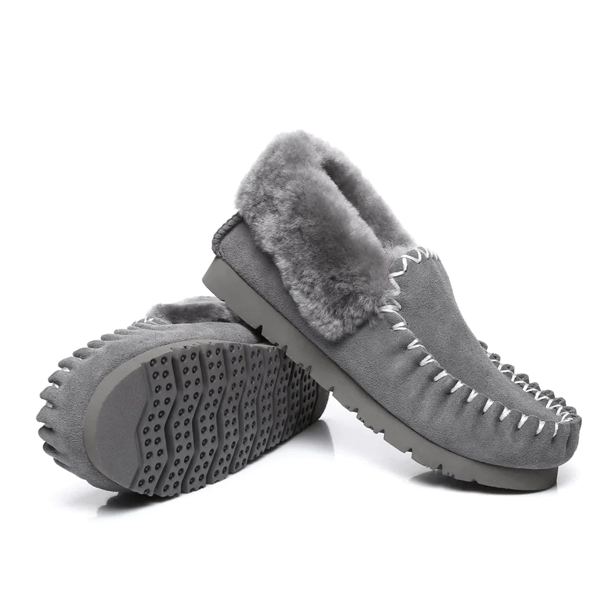 Step into a world of warmth and relaxation with Traditional Moccasins, a timeless essential for your at-home comfort. Made with meticulous craftsmanship, these moccasins feature genuine sheepskin that cradles your feet in softness and keeps them snugly insulated. The durable yet lightweight EVA sole ensures effortless movement, allowing you to navigate your surroundings with ease.