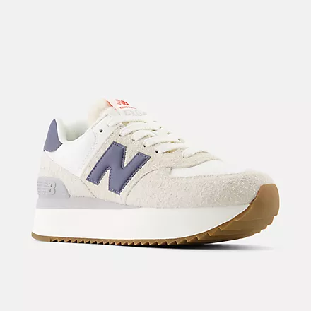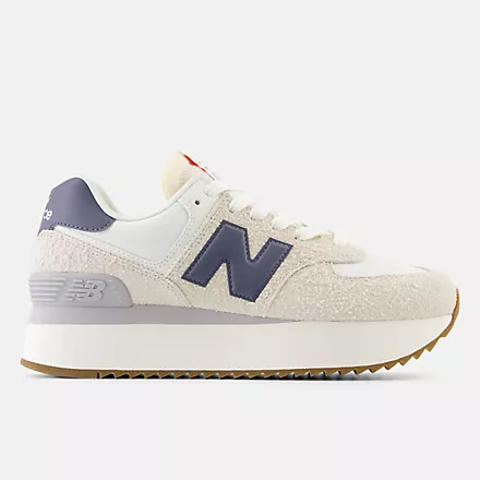 The 574 was built to be a reliable shoe that could do a lot of different things well. The 574??s unique, yet easy to wear set of qualities quickly made it a closet staple across the globe. The 574+ is a striking, contemporary twist on the classic 574 design. The addition of a stacked, two-piece EVA midsole with a scaled down ENCAP piece provides a polished sense of exaggeration. The midsole proportions are complimented by a ripple outsole, inspired by the original Trackster. Pigskin suede overlays and perforated leather and synthetic details offer a premium execution of the familiar 574 upper design.