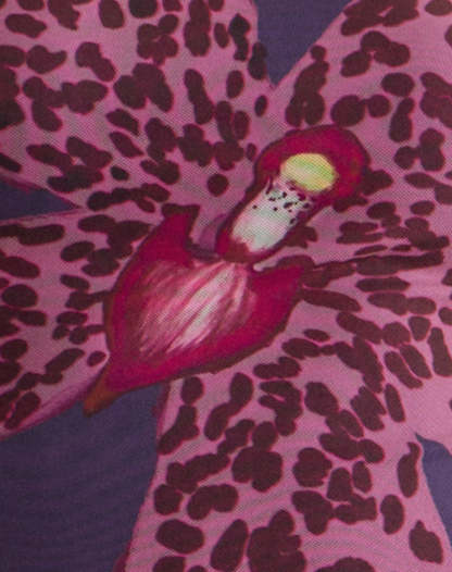 The Fayola dress in a purple printed mesh fabric with flower print detail. A style dress featuring a crew neck, sleeveless design and a solid lining.