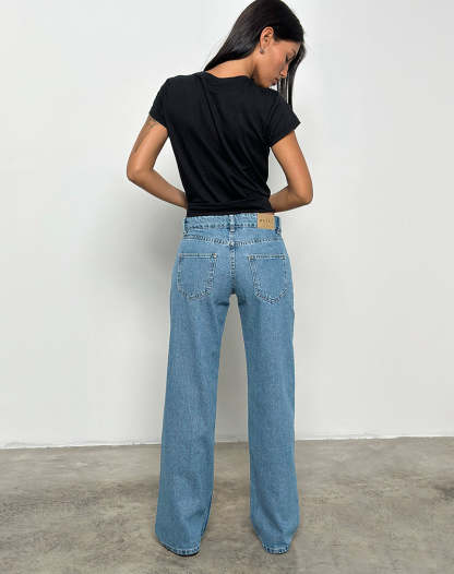 Low Rise Parallel Jeans in Blue Stone