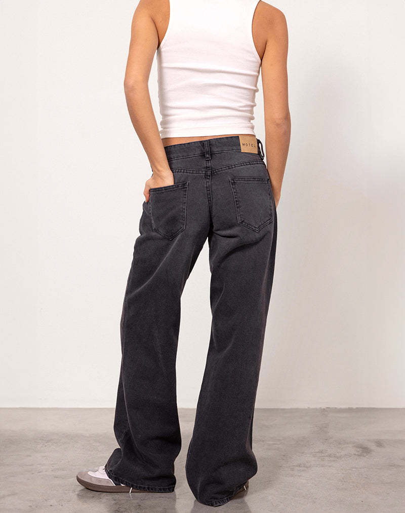 Our , in a vintage black wash, feature a fit with a , 5 pockets, branded back tab, branded button and rivets. We love to style with our shirt.