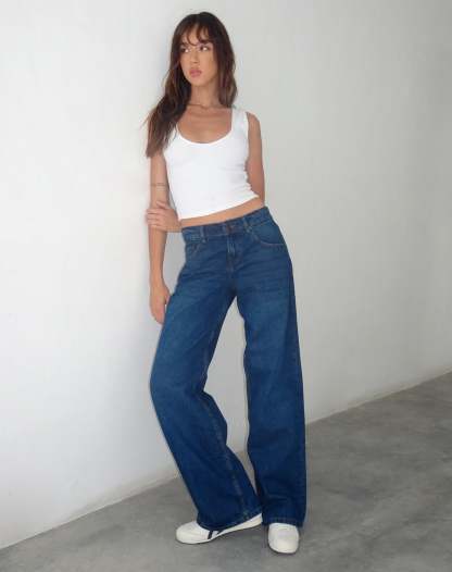 Low Rise Parallel Jeans in Mid Blue Used