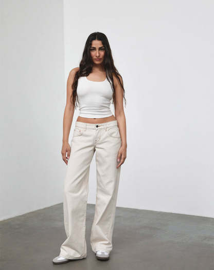 Low Rise Parallel Jeans in Off White
