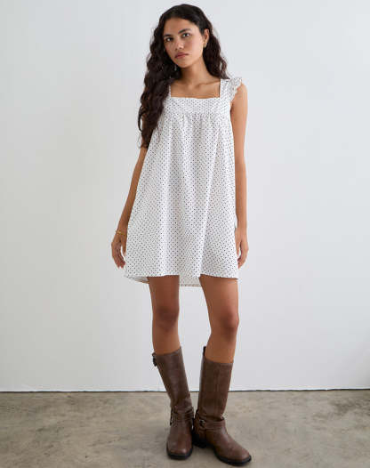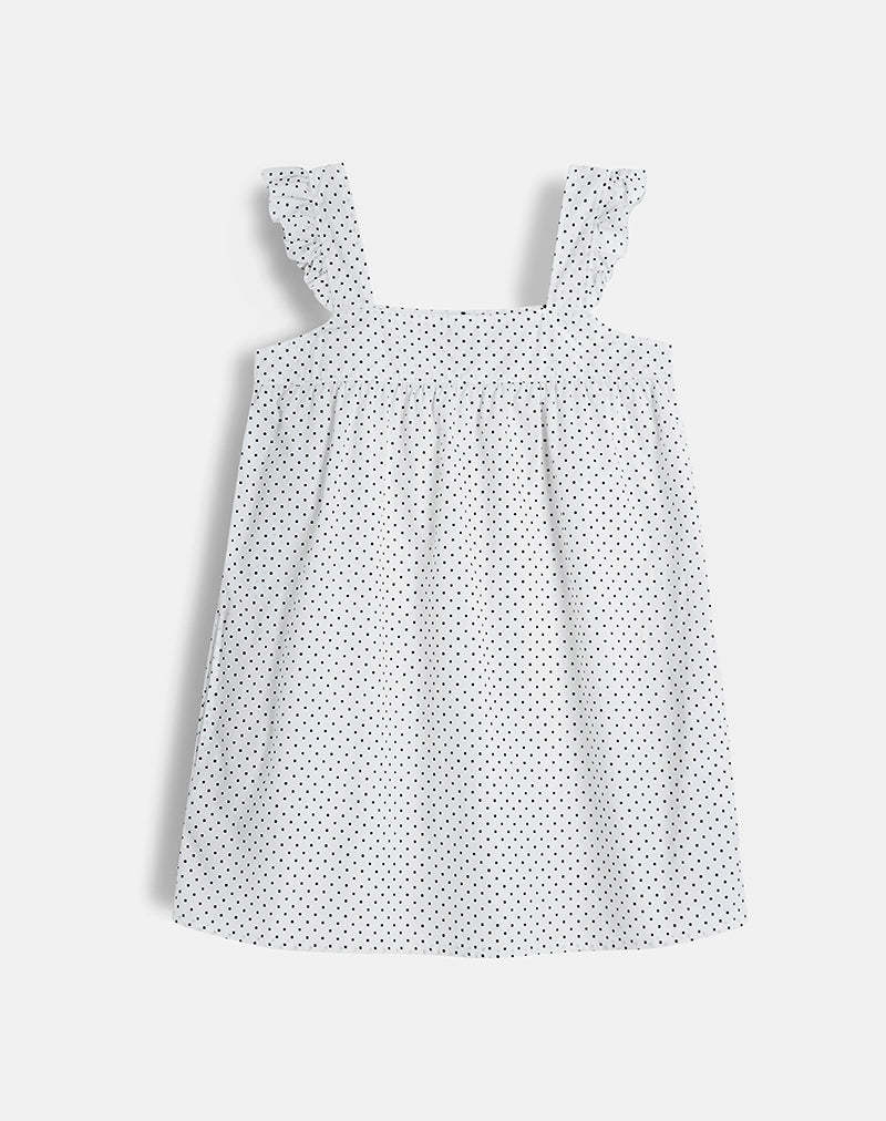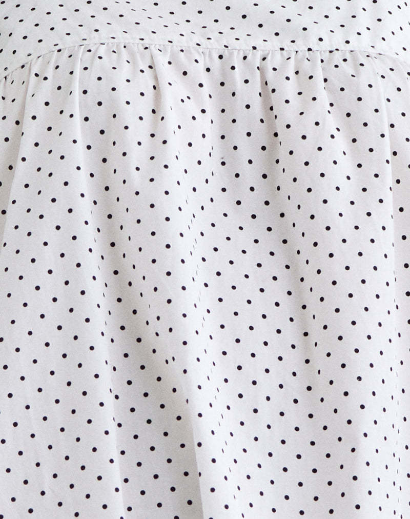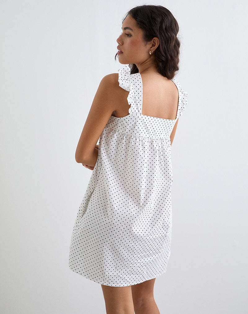 Sanaly Mini Dress in White with Black Micro Polka