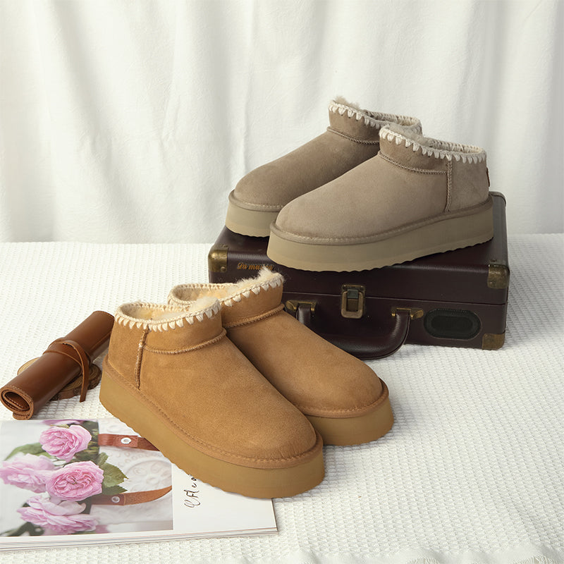 Our iconic uqdfgg Mini Myles Platform Boots are made from suede upper and sheepskin lining, keeping your feet comfortable in both summer and winter due to the insulation in the material. The additional layer of the pretreated suede upper ensures water resistance.